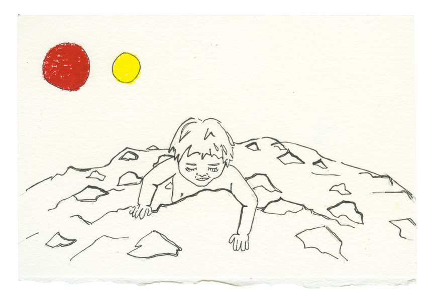 The 10x15 cm drawings take up the structure and subjects of the original photographs. Added to this is the world of childhood, created with intuition and emotion, through the use of memory as a support and legacy of an identity.